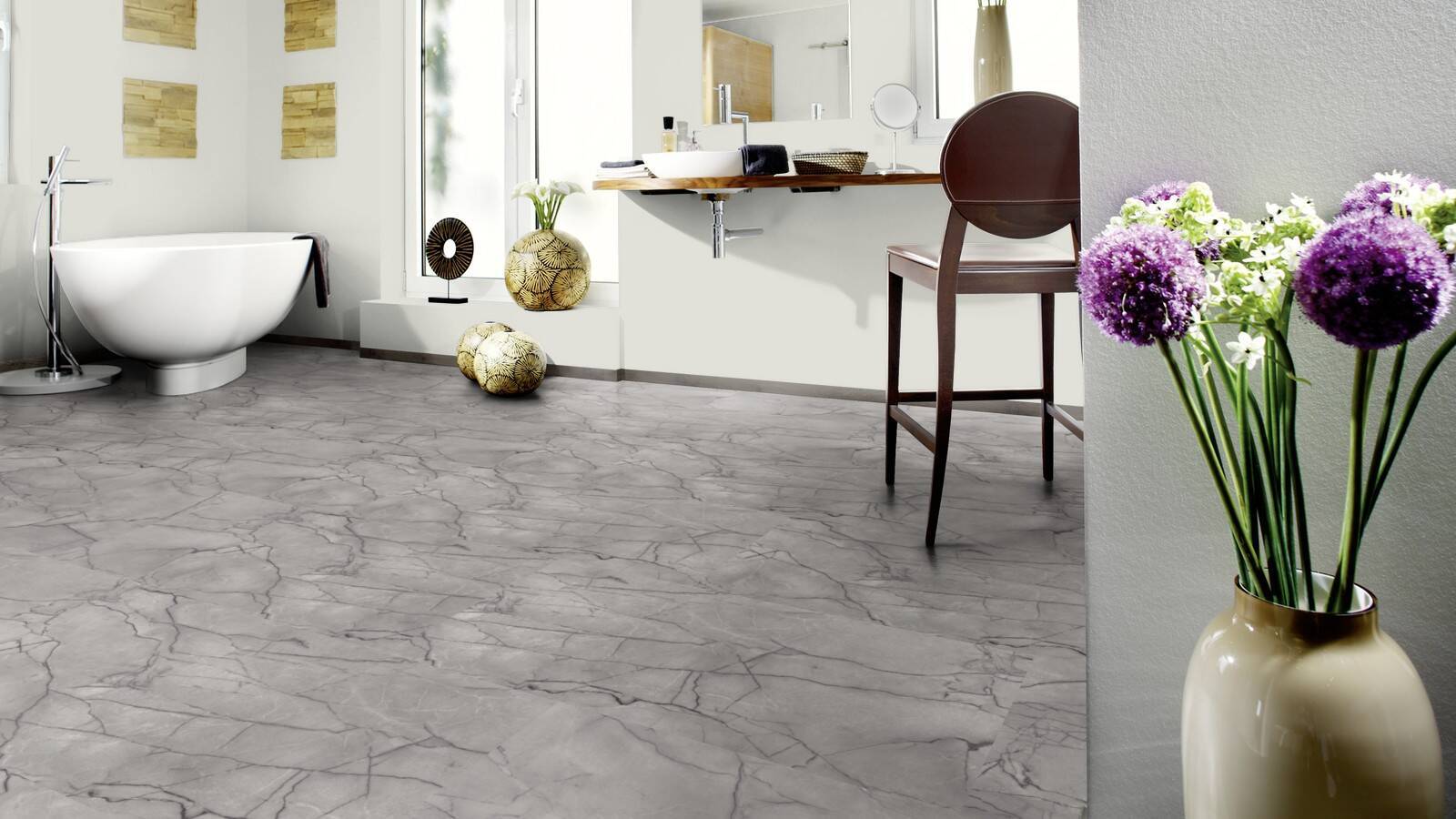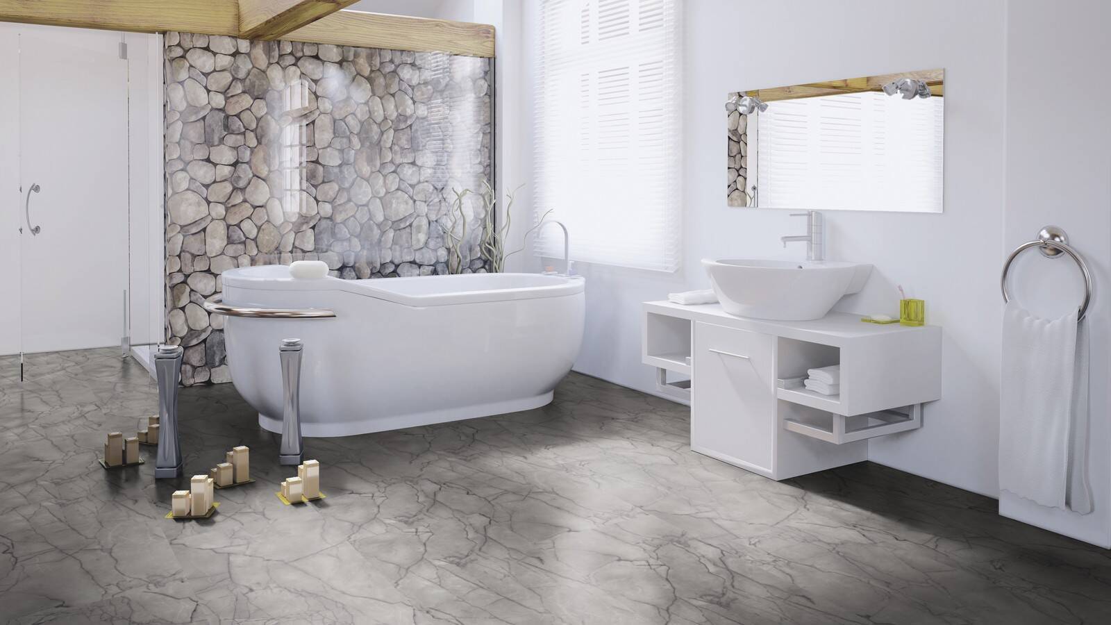 Klassischer Marmor, modernes Kuper und verschiedene Industriedesigns – wineo 1500 stone XL sorgt für eine authentische Optik im Format 1000 x 500 mm.