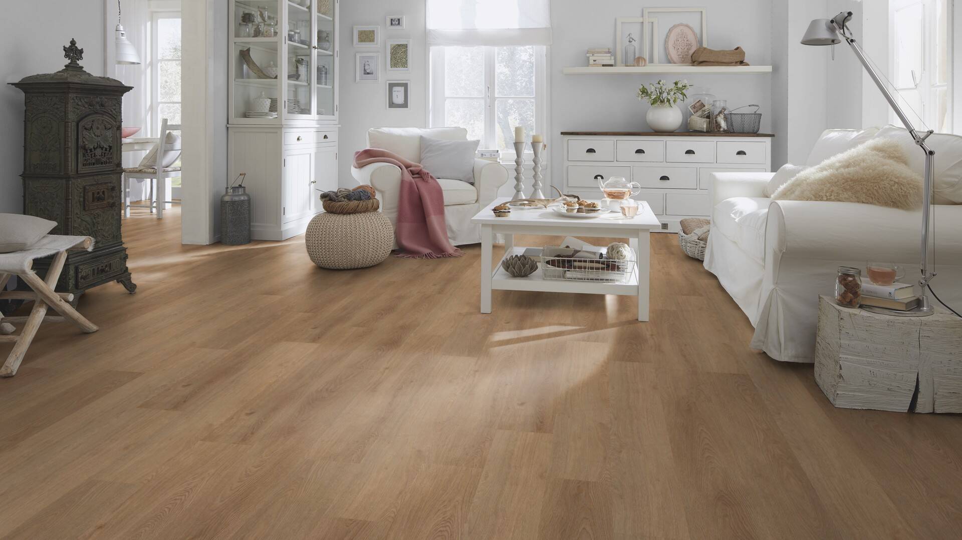Mit wineo 800 setzen Sie auf einen Designboden, der all diese Anforderungen erfüllt. Die Kollektion beinhaltet hochwertige Eichendekore und natürliche Betonoptiken, aber auch Highlight-Dekore wie ein eleganter Ahorn, eine ausdrucksstarke Walnuss, ein interessanter Kiefer und ein beeindruckender Marmor. Hiermit wird in jedem Raum eine warme, natürliche Atmosphäre geschaffen.